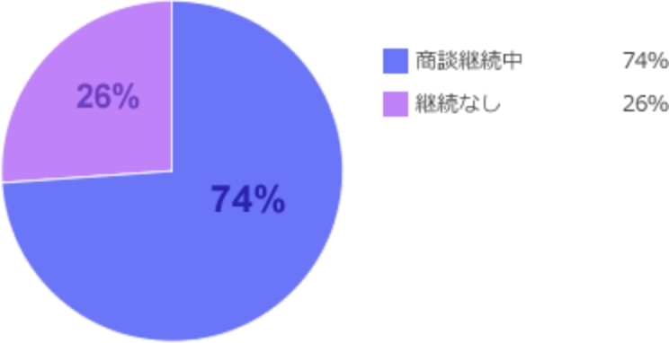 出展企業の約74%が出展後も商談を継続。 その内15%が出展後3ヶ月以内の成約につながっています。